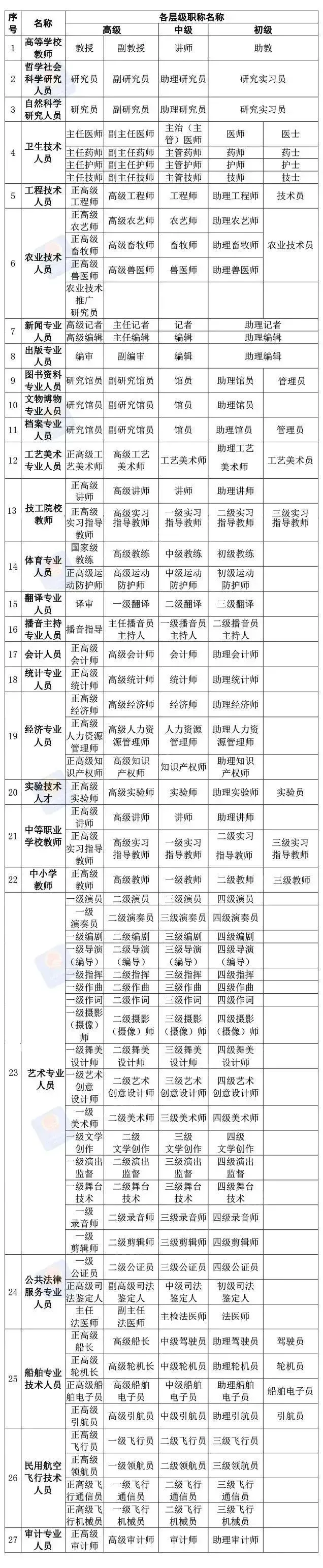 职称有哪些?