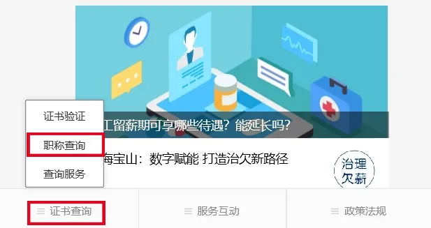 也可通过“人力资源和社会保障部”微信公众号,菜单栏“证书查询”—“职称查询”,进入查询页面。